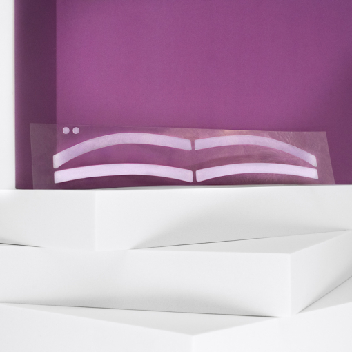 Directions: Place the Browmap – C on the eyebrows to set the desired shape. Use them as a guide before applying the airbrush dye. Once the layer is established, proceed with the application of the dye for a precise and symmetrical result.